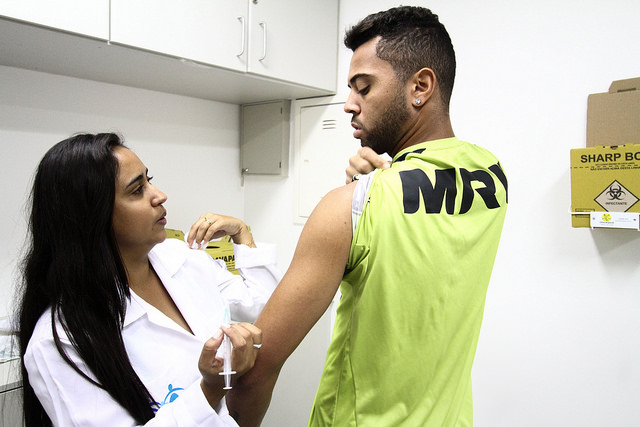 Antes do treino, atletas, comissão técnica e funcionários do clube foram vacinados contra a Gripe.