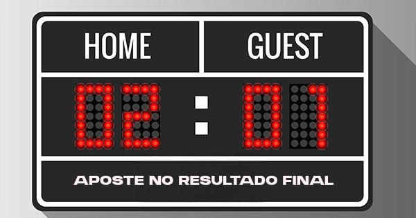 Ao encontrar a partida, é hora de procurar o mercado que estamos descrevendo: “Resultado Final”. Ele normalmente está no topo. Se não for o primeiro, é o segundo. Agora é só escolher se vai apostar no mandante, visitante ou empate. Simples assim. Clique na opção, escolha o valor que deseja apostar e pronto. Agora é só esperar o resultado final da partida para saber se ganhou ou perdeu a aposta.