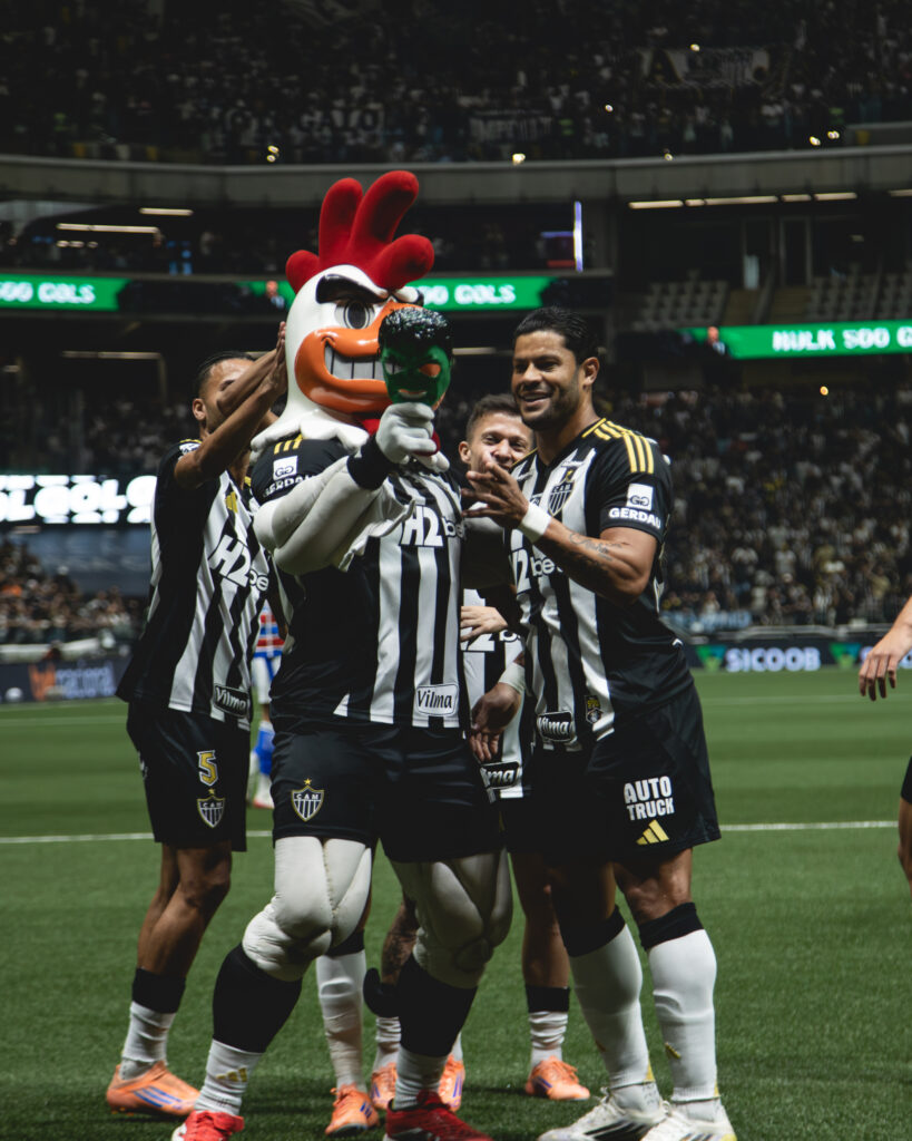 GOL DO GALO! Aos 10 minutos de jogo, o atacante Rony partiu pela ponta e cruzou na medida para achar Hulk na área do Fortaleza. Tinha que ser dele! O super-herói atleticano deu um toque fatal na bola para balançar as redes da Arena MRV. São 502 gols na carreira, 20 na atual temporada, 21 na Arena MRV. Atlético 1 a 0 Fortaleza!
