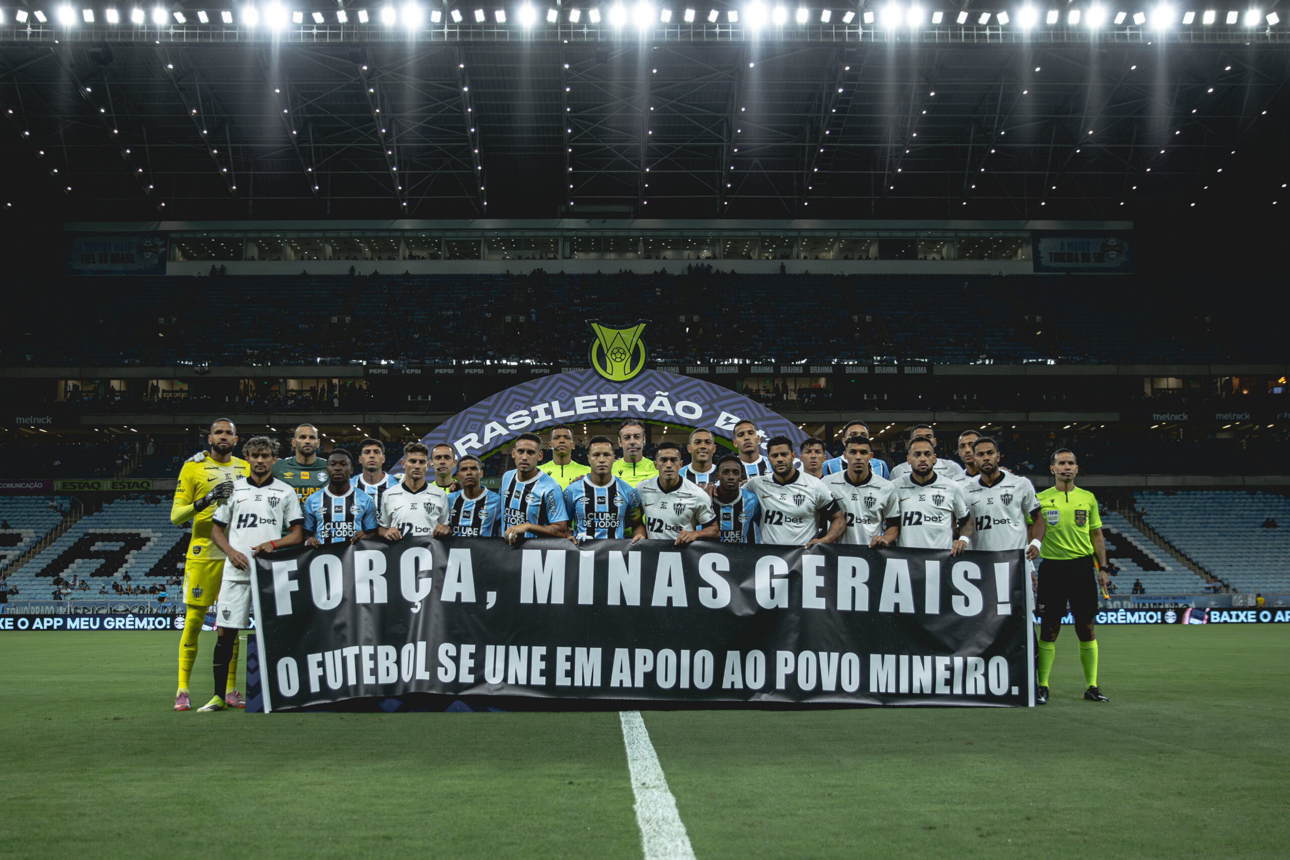 Antes de a bola rolar para Grêmio x Atlético no Campeonato Brasileiro, os atletas das duas equipes entraram em campo com uma faixa em apoio ao povo da Zona da Mata mineira, afetado pelas enchentes. Na torcida gremista, faixas e cartazes também demonstraram solidariedade ao povo mineiro.