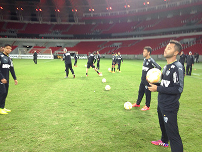 O grupo atleticano realizou um dois toques recreativo na noite desta terça-feira, no Estádio Beira-Rio, em Porto Alegre, no último treino antes do jogo contra o Internacional, pelas oitavas de final da Copa Bridgestone Libertadores da América.