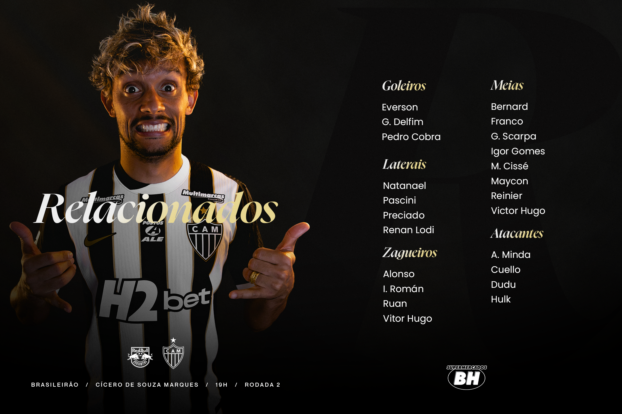 DM do Galo – Lyanco se recupera de lesão no tendão de Aquiles do pé esquerdo, sofrida em 8 de outubro de 2025. Já o meia Alexsander fará tratamento conservador após ruptura total do ligamento colateral medial do joelho esquerdo, sofrida no dia 31 de janeiro de 2026.