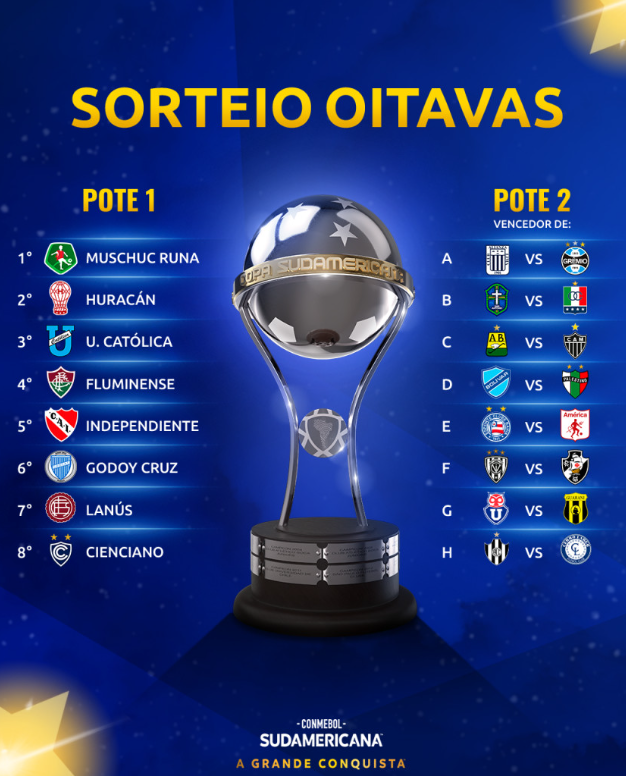Nesta segunda-feira, o Atlético irá participar do sorteio das oitavas da Copa do Brasil e da Copa Sul-Americana. No mata-mata nacional, o Galo está classificado para as oitavas e pode encarar qualquer um dos outros 15 clubes sobreviventes.