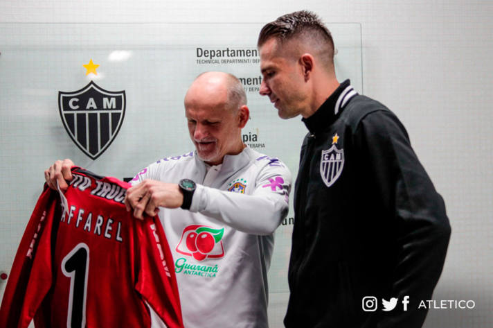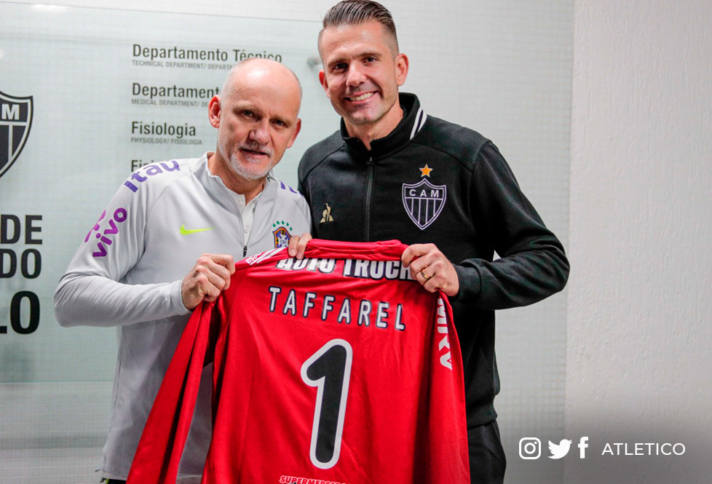 Encontro de ídolos – O goleiro Victor entregou uma camisa do Galo personalizada a Taffarel, também ídolo do Galo e atual treinador de goleiros da Seleção Brasileira.