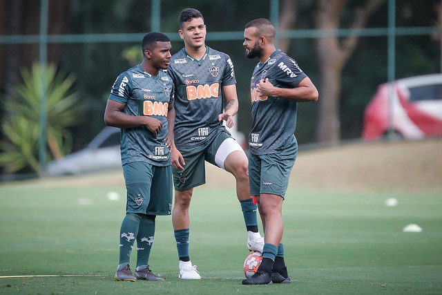 Os atletas que iniciaram o clássico do último domingo fizeram trabalho de força na academia e os demais participaram de treinamento tático no campo um da Cidade do Galo.