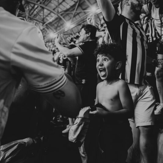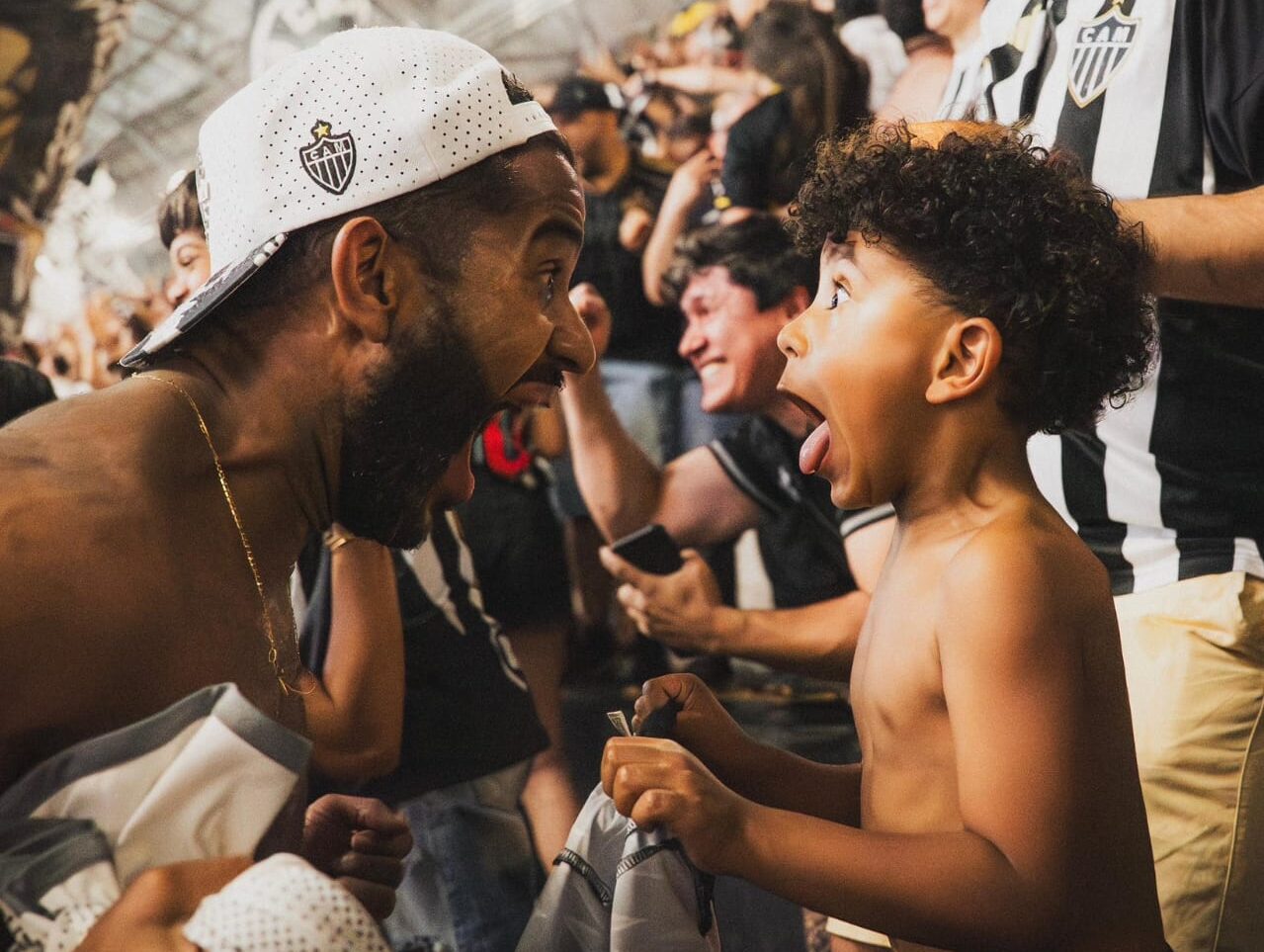 A fotografia que registra a explosão de emoção entre o pai, Thiago Henrique Santos, e seu filho após um gol do Atlético na Arena MRV ganhou o 1º lugar do World Sports Photography Awards (Prêmios Mundiais de Fotografia Esportiva), na categoria Futebol.