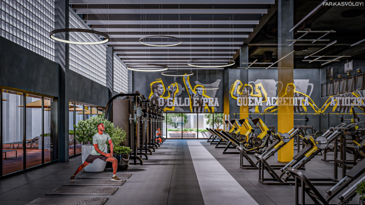 O novo prédio contará com ambientes modernos e integrados. O primeiro andar terá 800m² de área construída e acomodará a recepção, academia, consultório odontológico, setor de nutrição, fisioterapia e dois consultórios médicos. A nova academia terá o tamanho triplicado, permitindo o atendimento simultâneo de duas categorias.