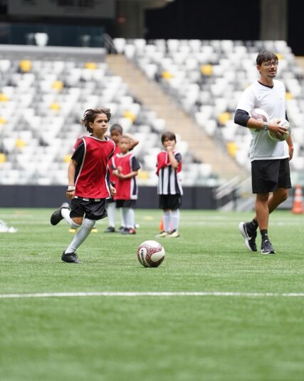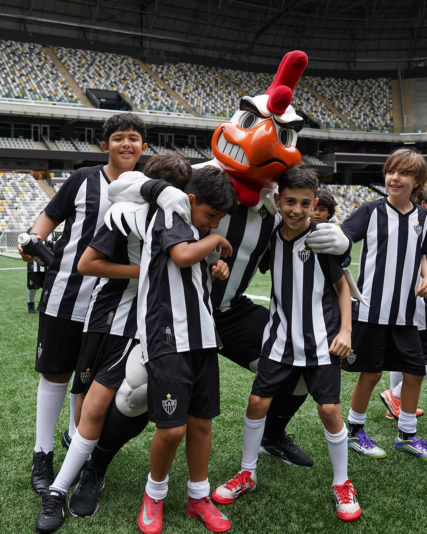 Em um formato de imersão, o projeto promoveu desenvolvimento motor, social e emocional, incentivando valores como respeito, trabalho em equipe, fair play e paixão pelo Galo.