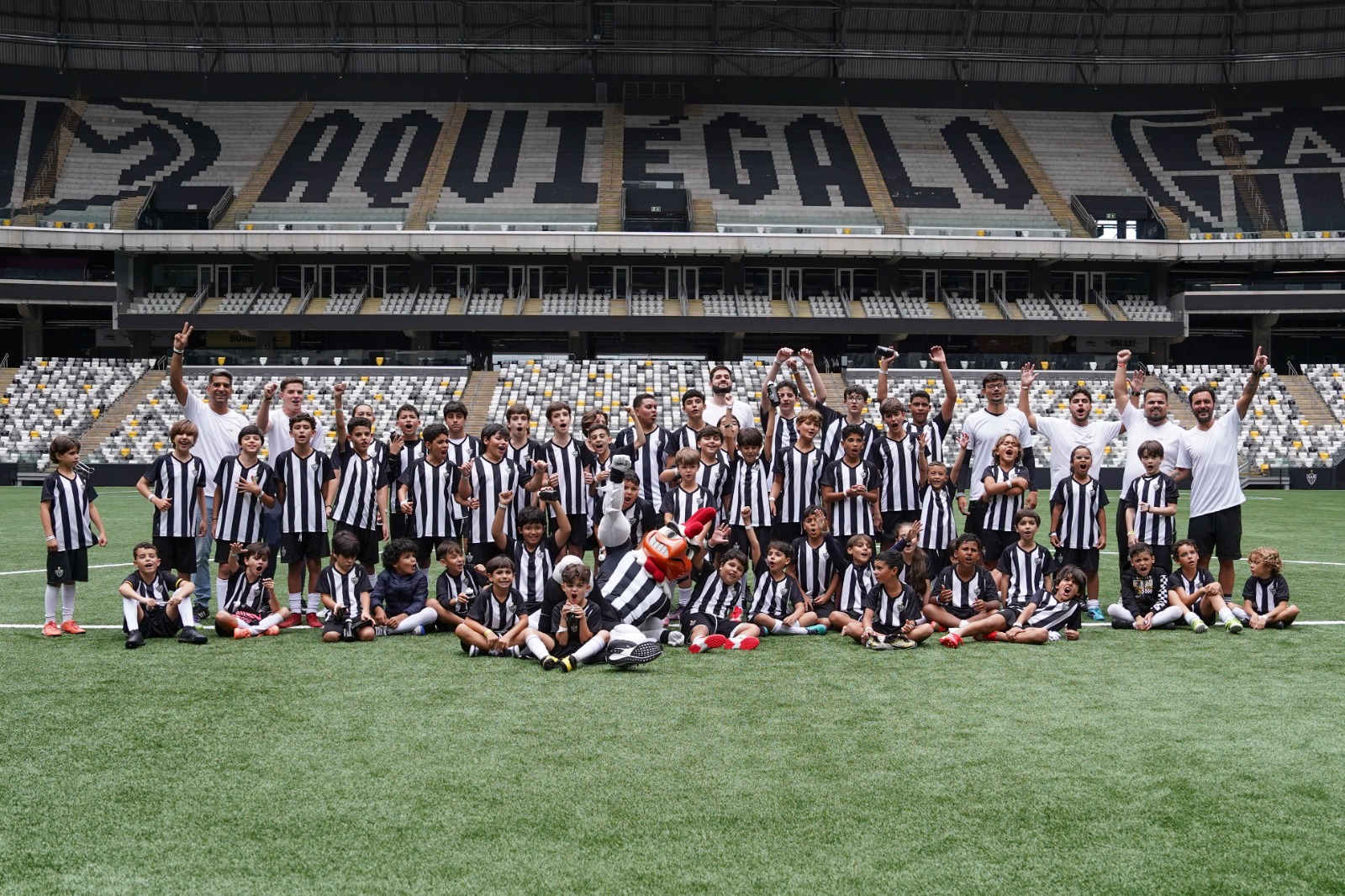 Em um formato de imersão, o projeto promoveu desenvolvimento motor, social e emocional, incentivando valores como respeito, trabalho em equipe, fair play e paixão pelo Galo.
