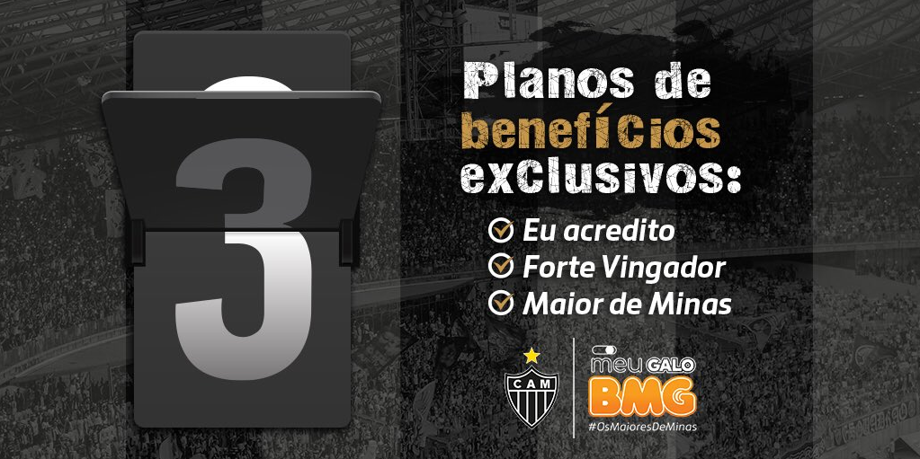 Os torcedores que baixarem o aplicativo Meu Galo BMG, sem custos, nas lojas virtuais dos sistemas Android e iOS, ou diretamente no site, terão diversas vantagens como: cartão personalizado do Clube, conta 100% online sem tarifas, cartão de crédito sem anuidade, transferências gratuitas, saques ilimitados no Banco 24h e pacote de benefícios para ajudar ainda mais o Atlético!