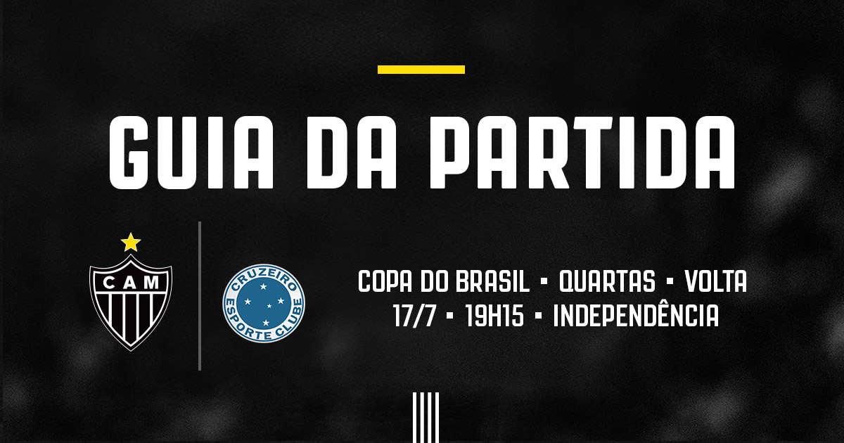 O Atlético enfrenta o Cruzeiro, no jogo de volta das quartas de final da Copa do Brasil. A partida será disputada às 19h15 desta quarta (17/7), na Arena Independência. Clique aqui e confira o guia com todas as informações sobre o jogo.