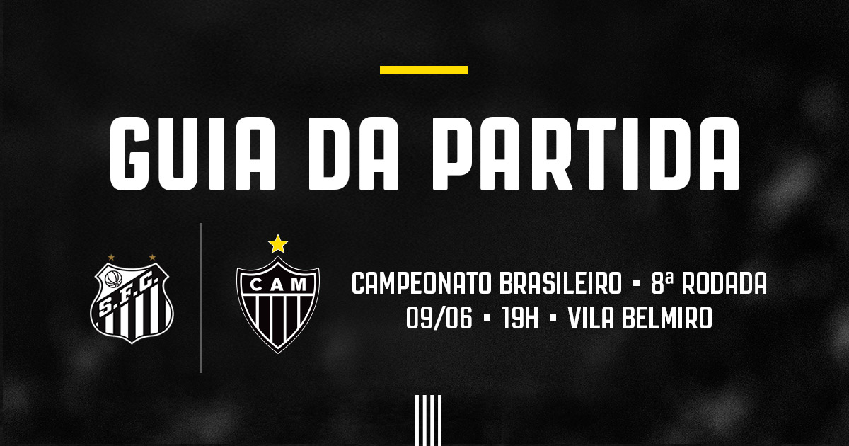 O Atlético enfrenta o Santos, pela 8ª rodada do Campeonato Brasileiro. A partida será disputada às 19h deste domingo (9/6), na Vila Belmiro, em Santos (SP). Confira o guia com todas as informações sobre o jogo.