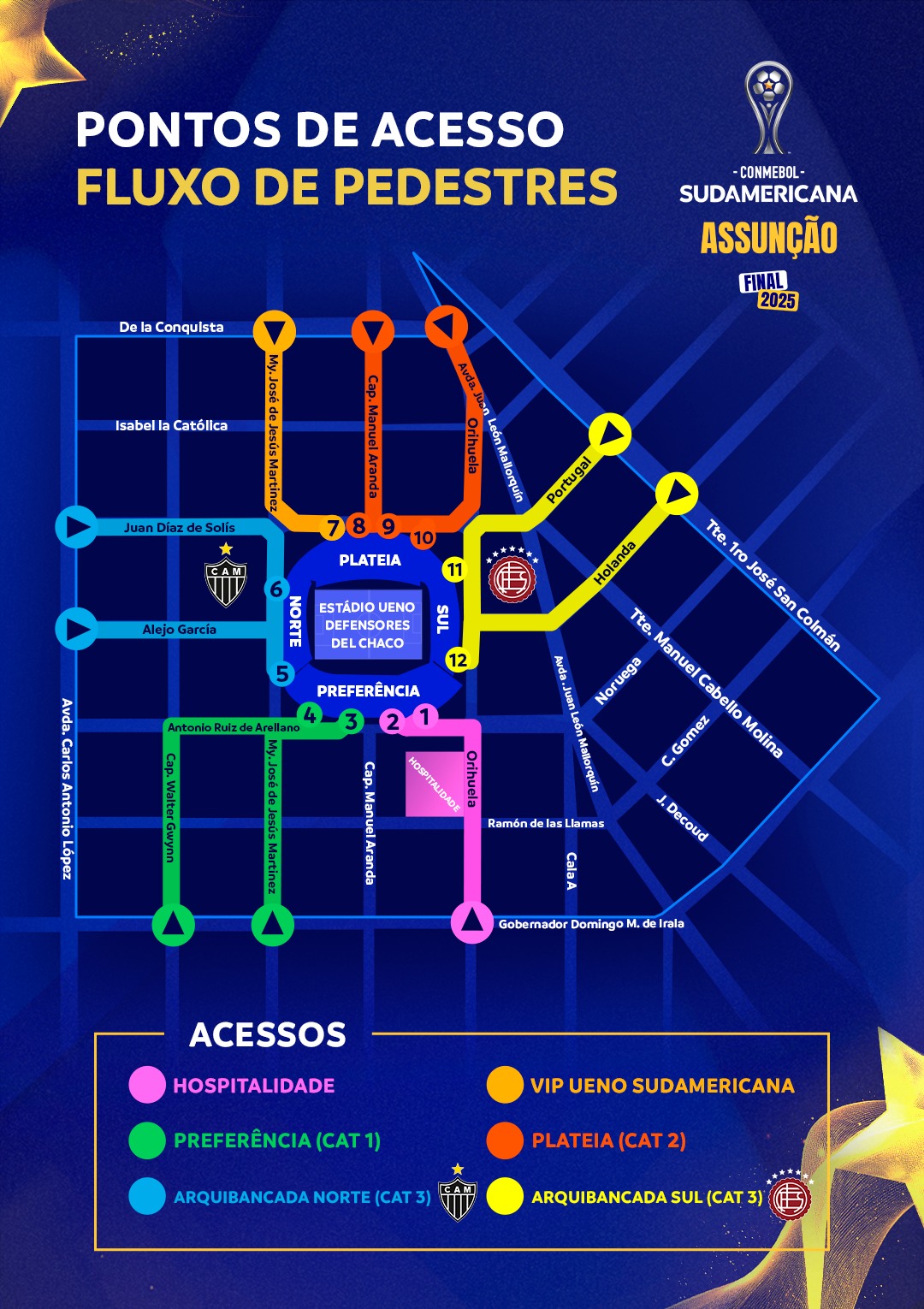 Para tanto, o Clube preparou um Guia da Final com as principais informações e dicas para uma viagem segura e confortável ao Paraguai. O jogo decisivo da Sudamericana será no estádio Defensores del Chaco, às 17h (de Brasília), e vale, além de um troféu internacional, a vaga na fase de grupos da Copa Libertadores de 2026 e a disputa da Recopa Sudamericana.