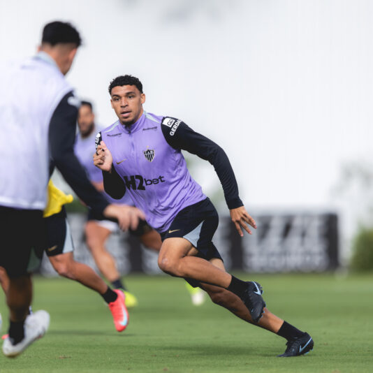 O elenco atleticano realizou, nesta sexta-feira (10/04), a última atividade de preparação no CT Joaquim Grava, do Corinthians, em São Paulo. O treinamento contou com trabalhos técnicos e táticos, seguidos de exercícios de finalização.