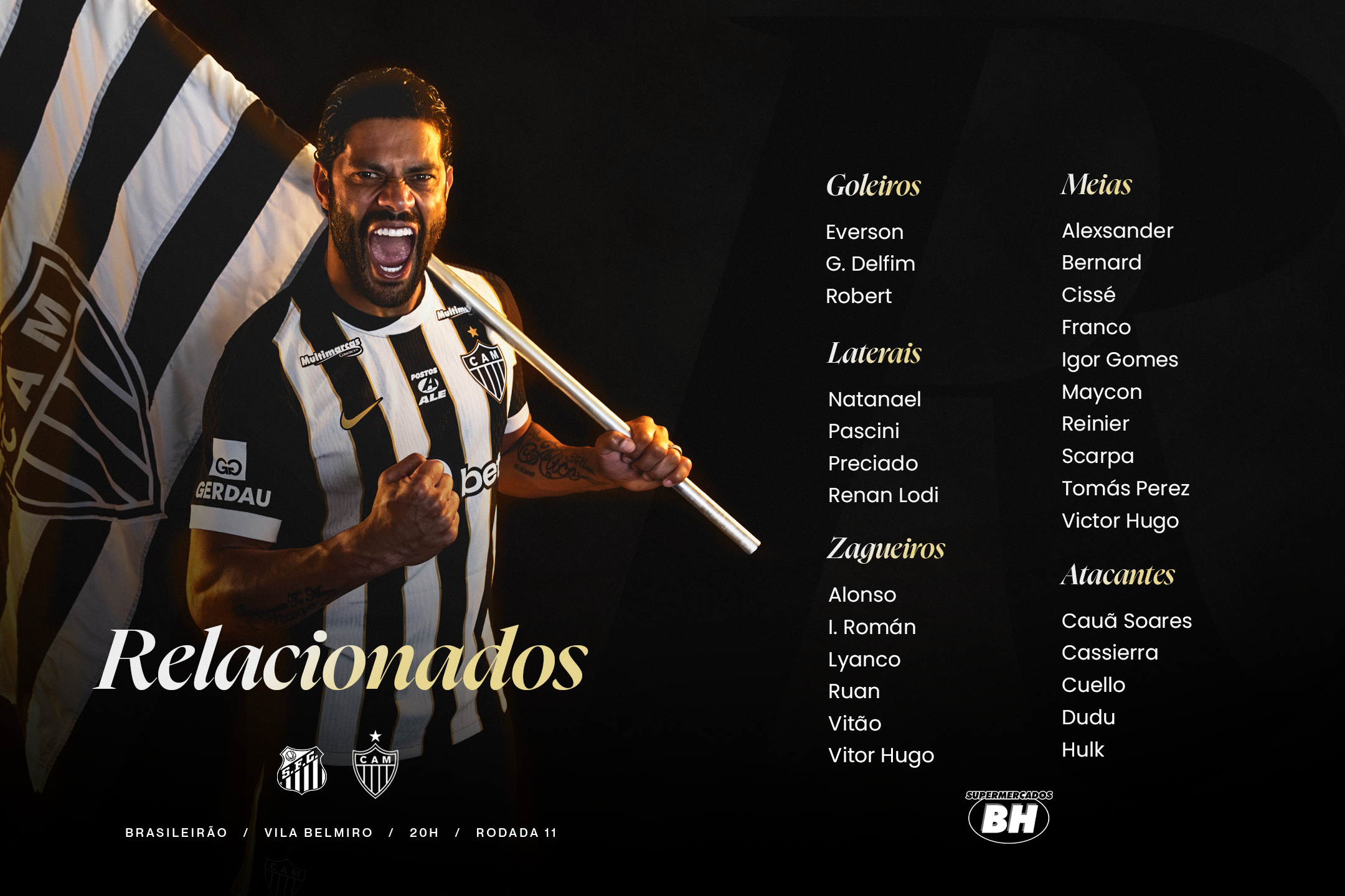 Confira os atletas relacionados para a partida: