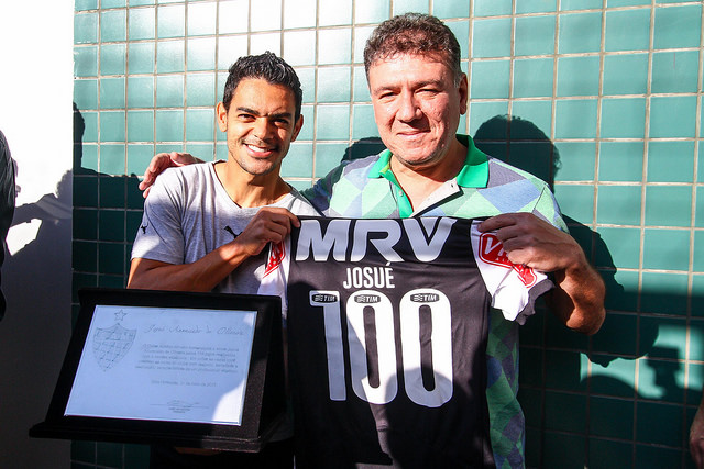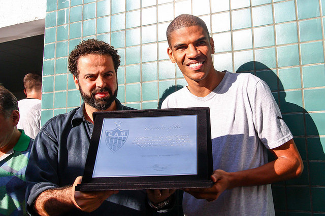 Já o meio-campista recebeu placa comemorativa aos seus 100 jogos pelo Atlético, completados na goleada sobre o Fluminense, em Brasília. A entrega foi feita pelo assessor da Presidência, João Luiz Avelar.