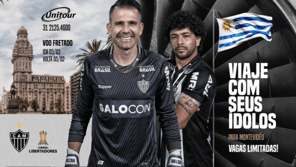 Vá junto com a delegação atleticana para Montevidéu, em voo fretado, torcer pelo Galo no jogo contra o Danúbio, na próxima terça-feira (5/2), pela Libertadores.