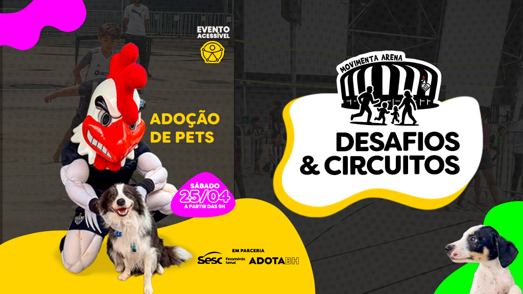 Uma das atrações mais especiais da Arena MRV retorna à programação do Instituto Galo neste sábado (25): o Movimenta Arena acontece a partir das 9h com uma das temáticas mais envolventes de todas as realizações. Para a alegria das crianças e familiares, a manhã será de adoção de pets em parceria com o Sesc Fecomércio Senac e o programa Adota BH, idealizado pela Prefeitura de Belo Horizonte. O intuito do evento é abrir as portas da Casa do Galo para todos os moradores do entorno do estádio e população.