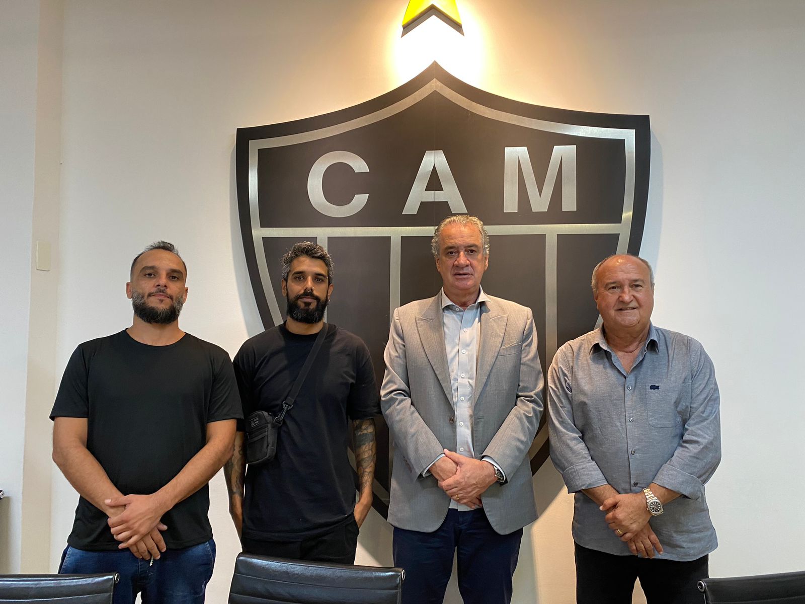 O presidente Sérgio coelho recebeu os grafiteiros Felipe Arco e Rafael Davi, na Sede de Lourdes, para reforçar o apoio do Clube ao projeto Califórnia Alvinegro, que vem transformando o entorno da Arena MRV com grafites alusivos ao Galo.