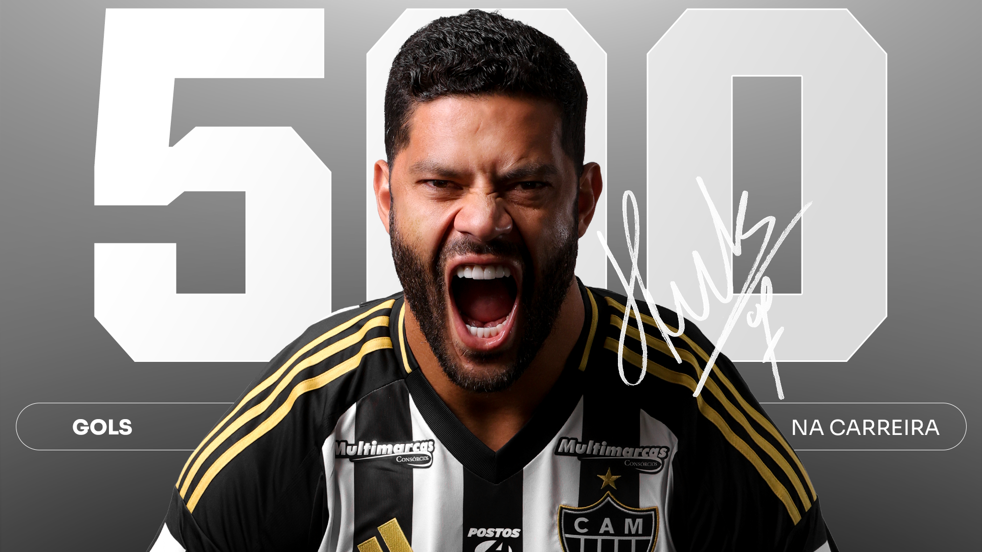 Consagrado entre os maiores ídolos do Galo, Hulk chegou à histórica marca de 500 gols totais na carreira profissional! O memorável gol foi marcado diante do Bahia, na Arena MRV, no dia 5 de novembro de 2025, pela 32ª rodada do Campeonato Brasileiro.