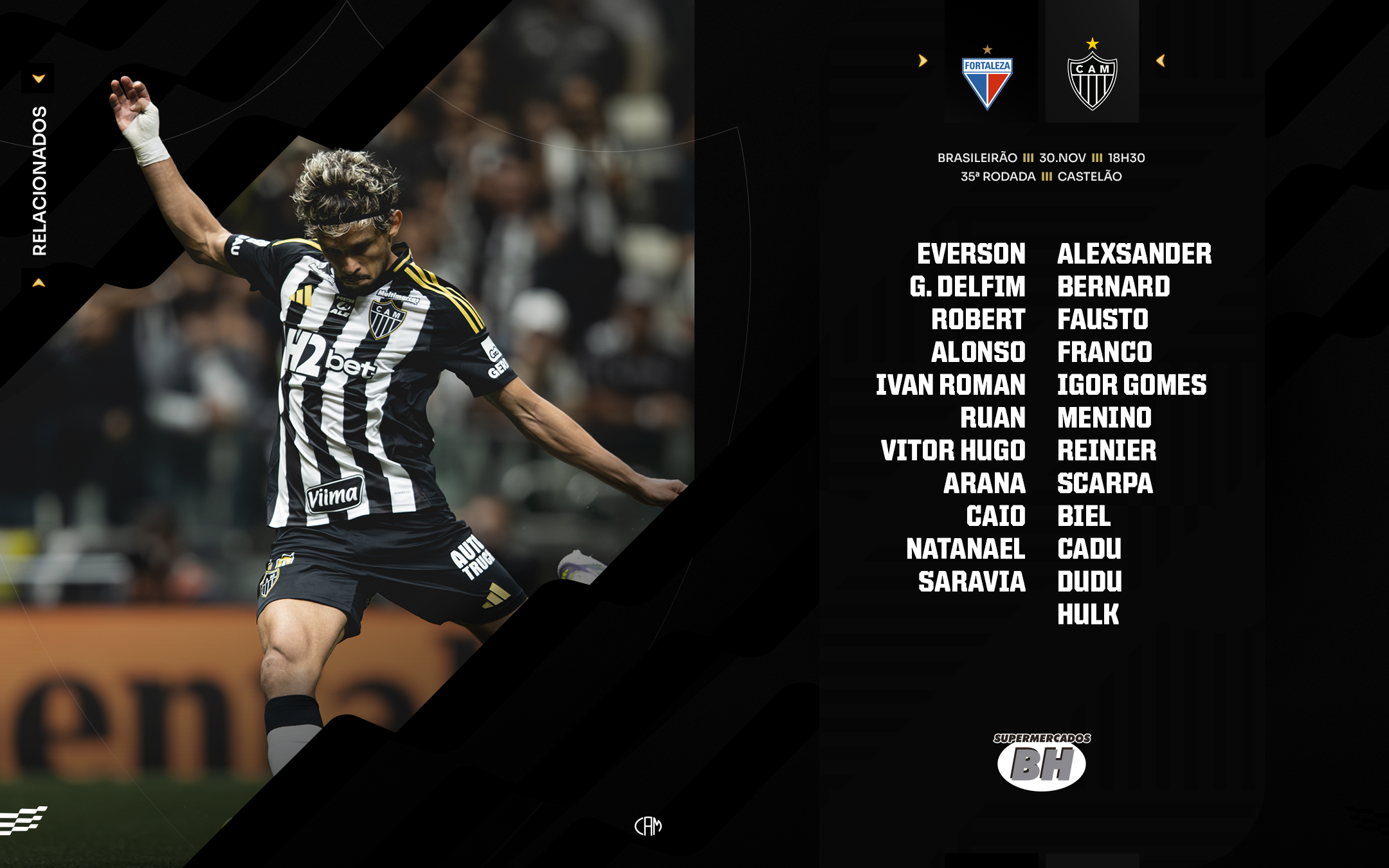 O técnico Jorge Sampaoli relacionou 23 jogadores para o duelo deste domingo, na Arena Castelão. O jogo pela 35ª rodada da Série A começará às 18h30.