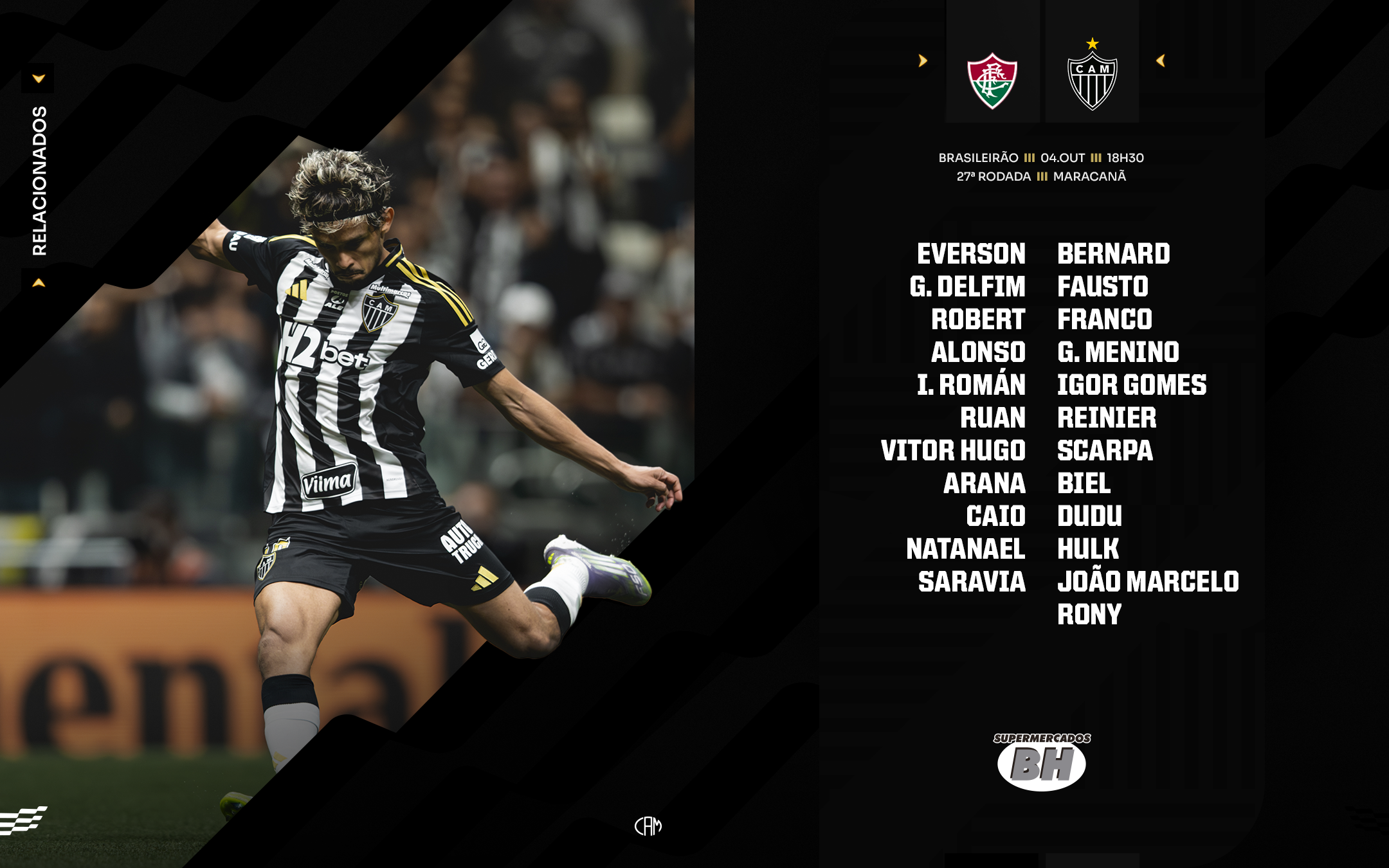 Os desfalques do Atlético são os jogadores em recuperação no DM, além do zagueiro Lyanco, que irá cumprir a suspensão automática. Em contrapartida, o quarteto Everson, Guilherme Arana, Junior Alonso e Hulk está relacionado e retorna após ser ausência na rodada passada.