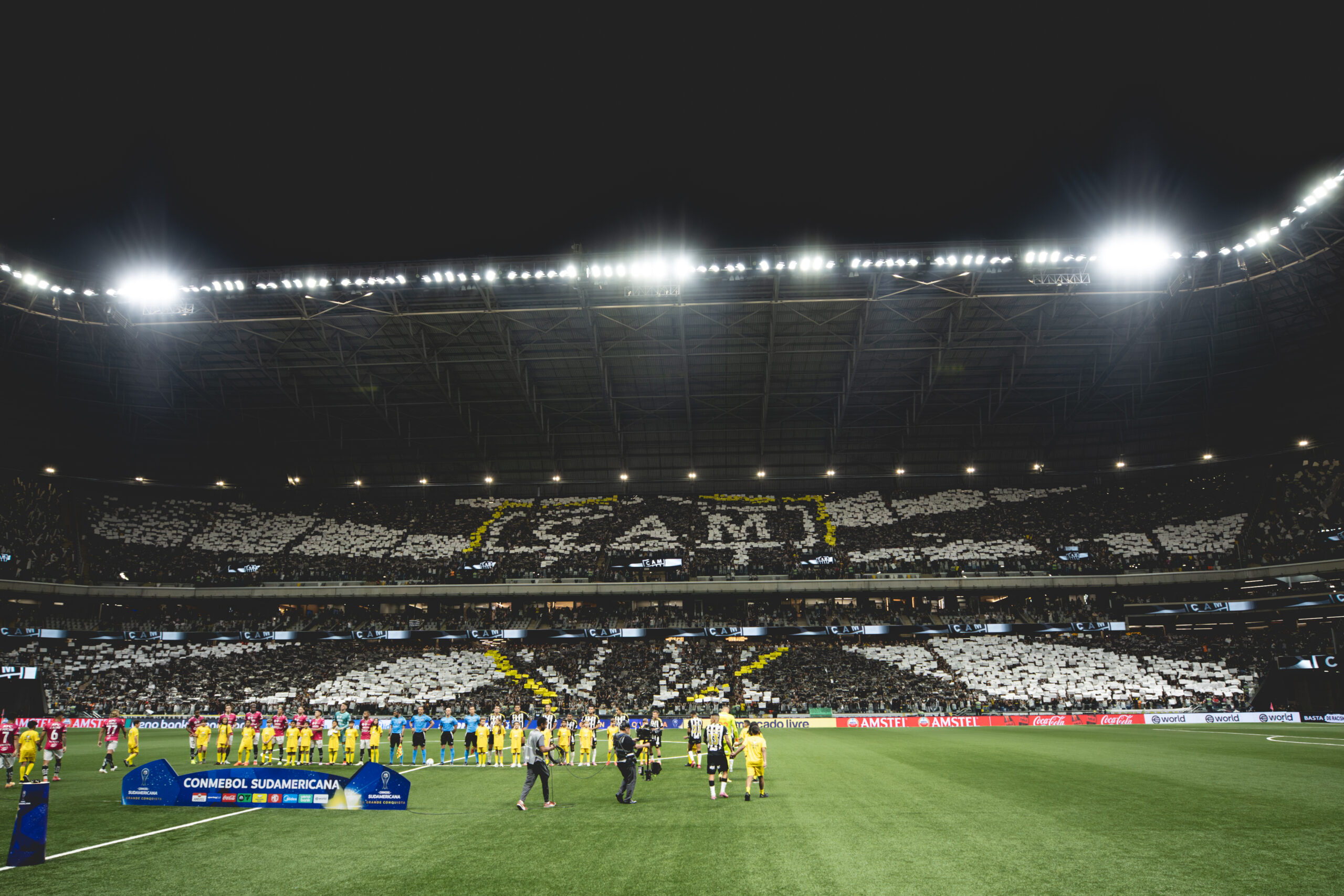 O lindo mosaico para o recebimento dos jogadores na partida contra o Independiente del Valle, na semifinal da Copa Sudamericana.