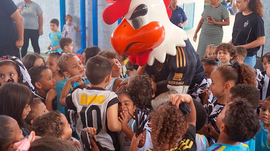 “Aprendemos que o bom é torcer com alegria e com felicidade. Nossas crianças ficaram muito emocionadas com o Galo Doido”, disse a coordenadora Kelly Oliveira, da base Campo Alto.