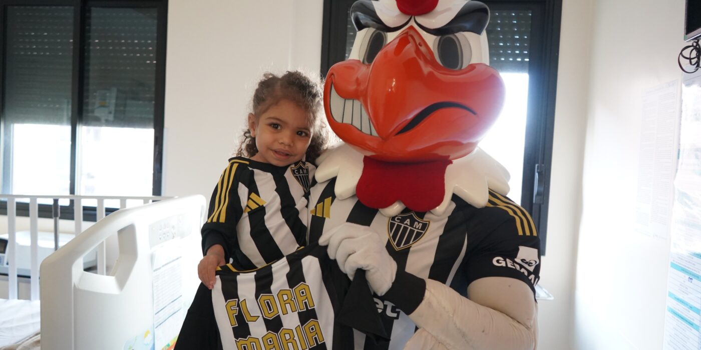 Em um gesto de carinho e solidariedade, o Instituto Galo promoveu uma visita especial à pequena Flora Maria, torcedora de apenas 4 anos em tratamento contra um câncer no rim. O encontro aconteceu no Hospital Vila da Serra, em Nova Lima, com a presença do mascote Galo Doido, que levou alegria e presentes personalizados do Instituto Galo.