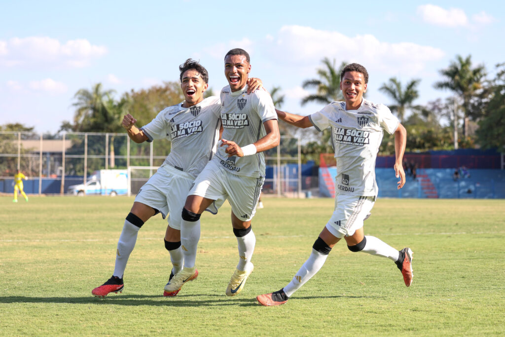 Cauã Soares (C) comemora gol contra o América, pelo Campeonato Brasileiro Sub-17. Foto: Daniela Veiga / Atlético