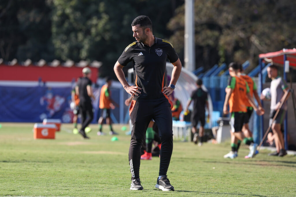 Henrique Teixeira, técnico do Sub-17 do Galo, na vitória sobre o América. Foto: Daniela Veiga/Atlético